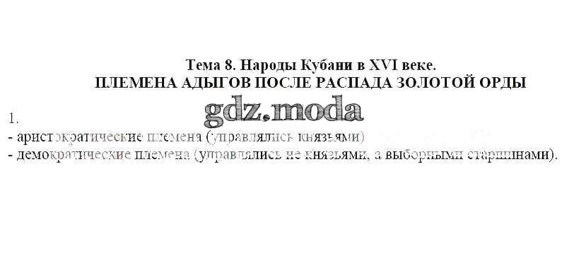 ОТВЕТ на задание № 1 Рабочая тетрадь по Кубановедению 6 класс Близнюк