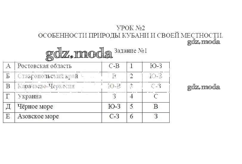 ОТВЕТ на задание № 1 Рабочая тетрадь по Кубановедению 6 класс Голикова