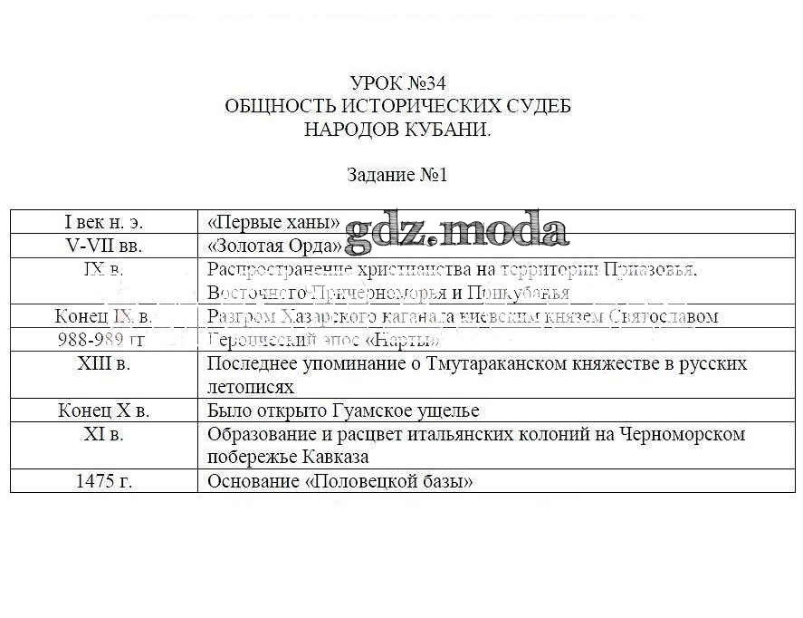ГДЗ решение к заданию № 1 Кубановедение 6 класс рабочая тетрадь Голикова Н.Ю. Традиция 2019 ФГОС бесплатно на гдз.мода!
