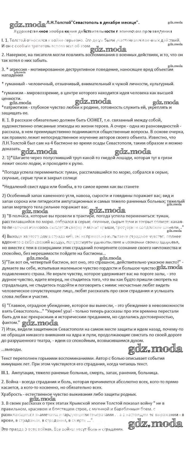 ГДЗ решение к заданию № Л.Н. Толстой. Севастополь в декабре месяце. Художественное изображение действительности в эпическом произведении Литература 6 класс рабочая тетрадь Бунеев Р.Н. Баласс 2015 ФГОС бесплатно на гдз.мода!