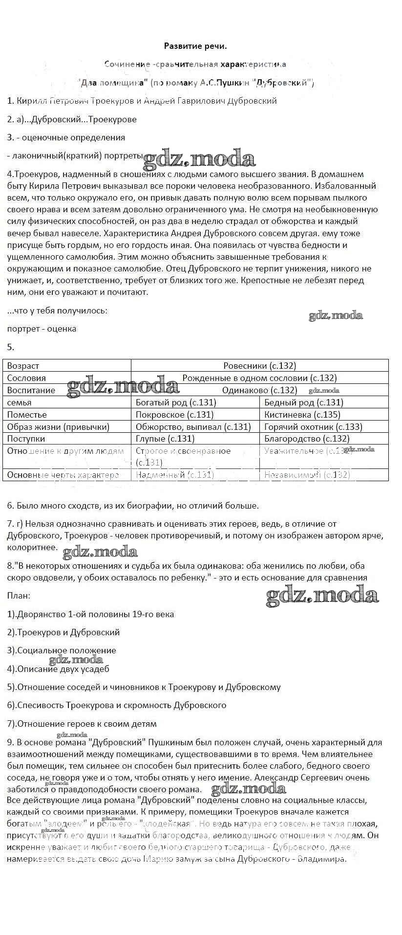 ОТВЕТ на задание № Развитие речи. Сочинение-сравнительная характеристика Два помещика (по роману А.С. Пушкина Дубровский) Рабочая тетрадь по Литературе 6 класс Бунеев Школа 2100