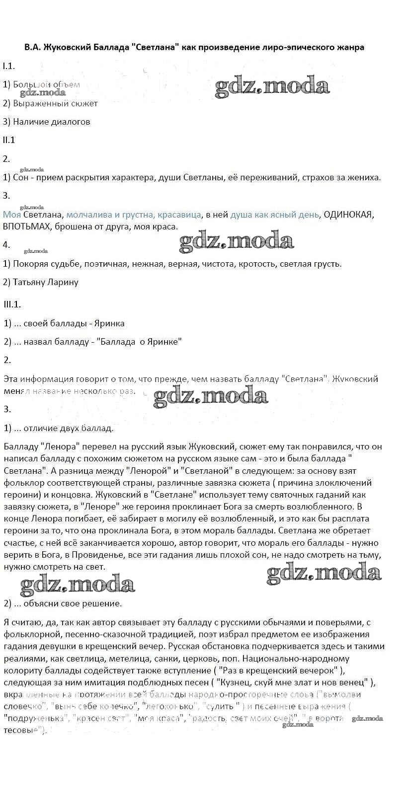 ГДЗ решение к заданию № В.А. Жуковский. Баллада Светлана как произведение лиро-эпического жанра Литература 6 класс рабочая тетрадь Бунеев Р.Н. Баласс 2015 ФГОС бесплатно на гдз.мода!