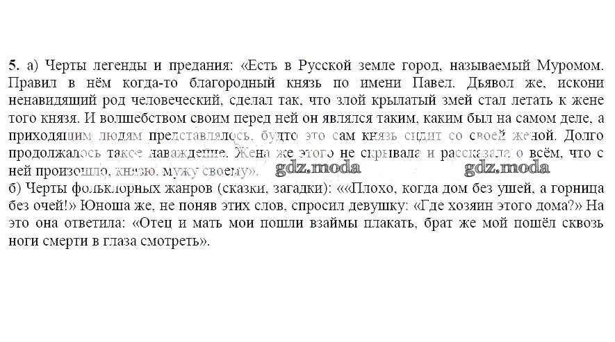 ГДЗ решение к заданию № 5 Литература 6 класс Чертов В.Ф. Просвещение 2018 Часть 1, Часть 2 ФГОС бесплатно на гдз.мода!