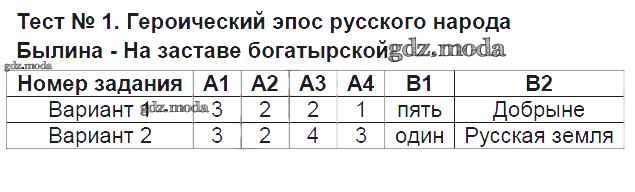 ОТВЕТ на задание № Тест №1. Героический эпос русского народа Контрольно-измерительные материалы (КИМ) по Литературе 6 класс Королева