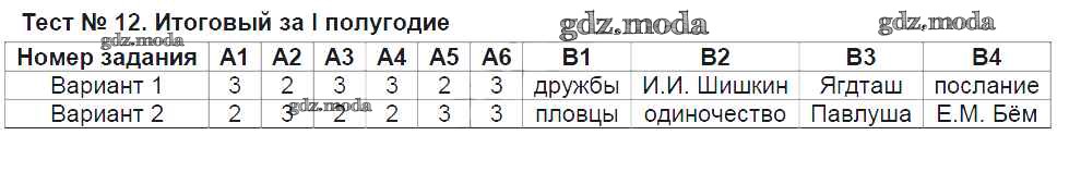 ГДЗ решение к заданию № Тест №12. Итоговый за I полугодие Литература 6 класс контрольно-измерительные материалы Королева Н.С. ВАКО 2015 ФГОС бесплатно на гдз.мода!