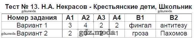 ГДЗ решение к заданию № Тест №13. Крестьянские дети, Школьник Литература 6 класс контрольно-измерительные материалы Королева Н.С. ВАКО 2015 ФГОС бесплатно на гдз.мода!