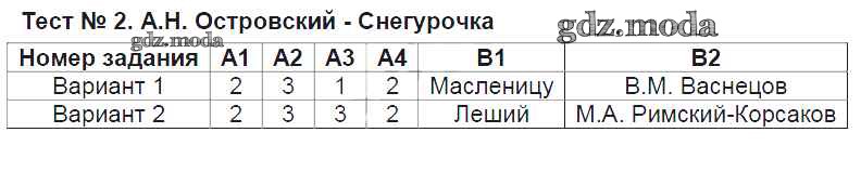 ГДЗ решение к заданию № Тест №2. Снегурочка Литература 6 класс контрольно-измерительные материалы Королева Н.С. ВАКО 2015 ФГОС бесплатно на гдз.мода!