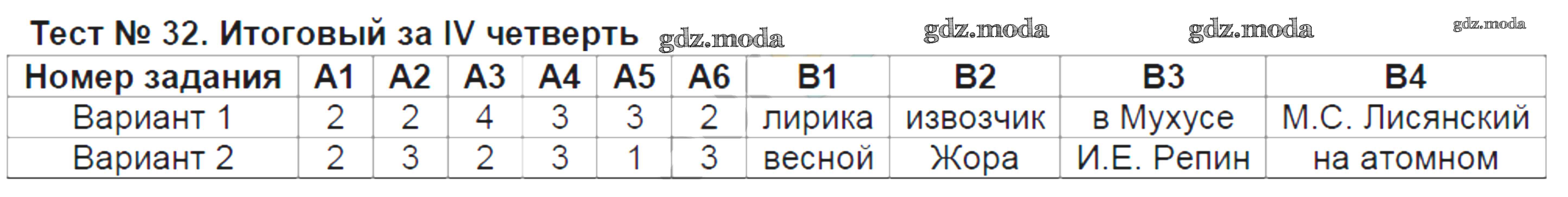 ГДЗ решение к заданию № Тест №32. Итоговый за IV четверть Литература 6 класс контрольно-измерительные материалы Королева Н.С. ВАКО 2015 ФГОС бесплатно на гдз.мода!