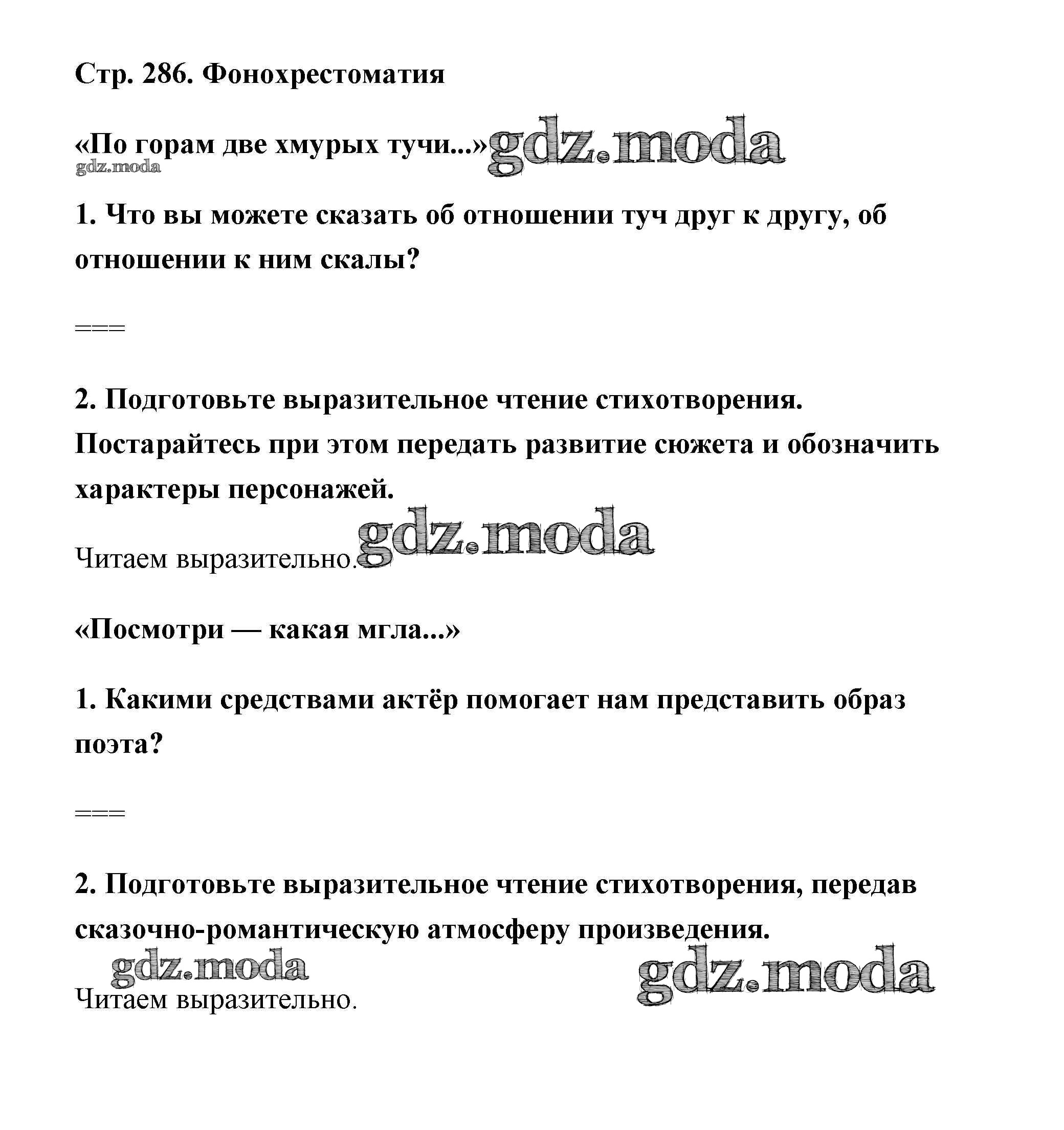 ГДЗ решение к заданию № страница 286 Литература 6 класс Коровина Просвещение 2016 Часть 1 ФГОС бесплатно на гдз.мода!