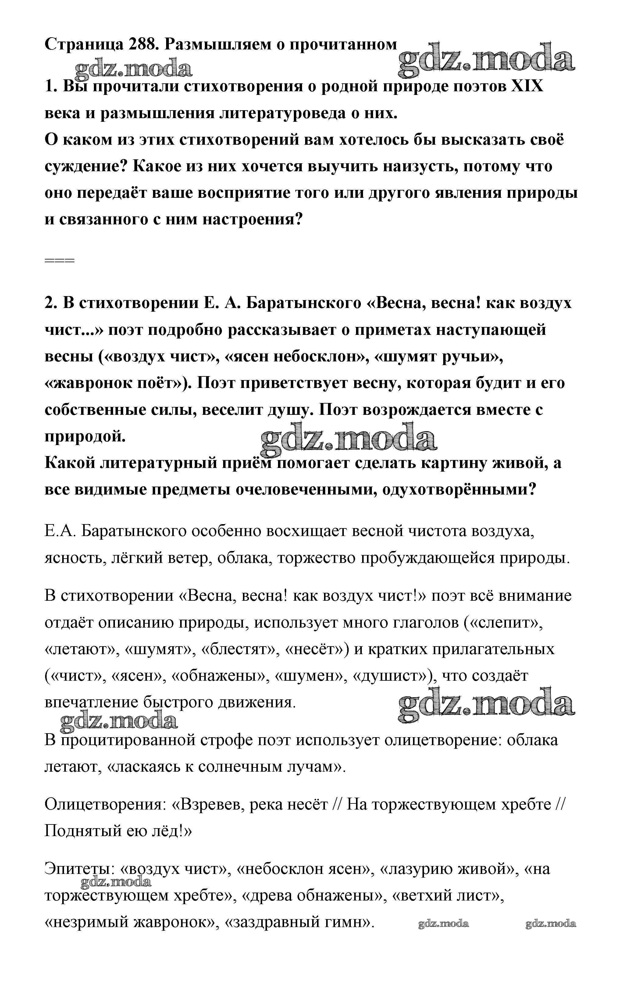 ГДЗ решение к заданию № страница 288 Литература 6 класс Коровина Просвещение 2016 Часть 1 ФГОС бесплатно на гдз.мода!