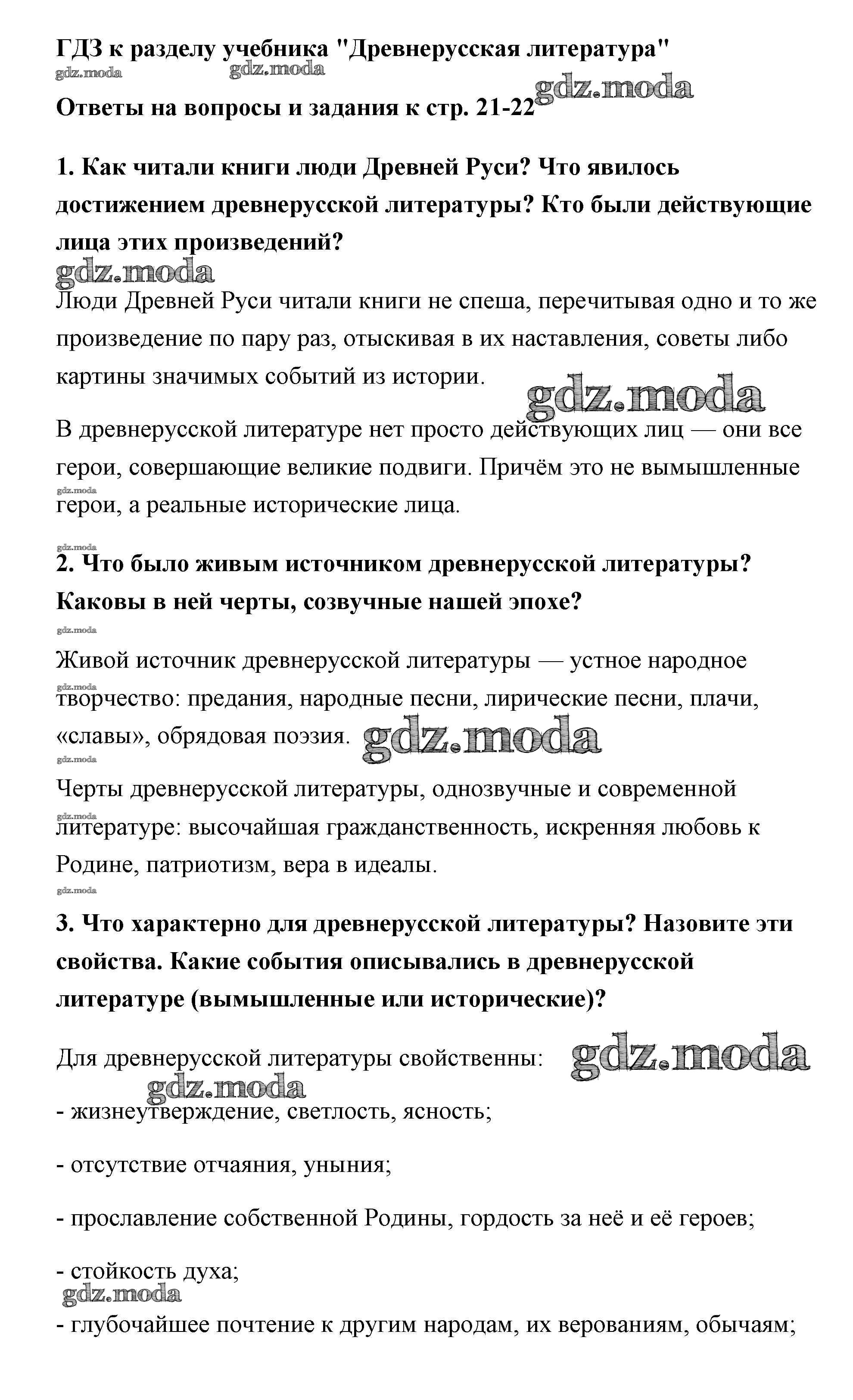 ОТВЕТ на задание № страница 21-22 Учебник по Литературе 6 класс Полухина