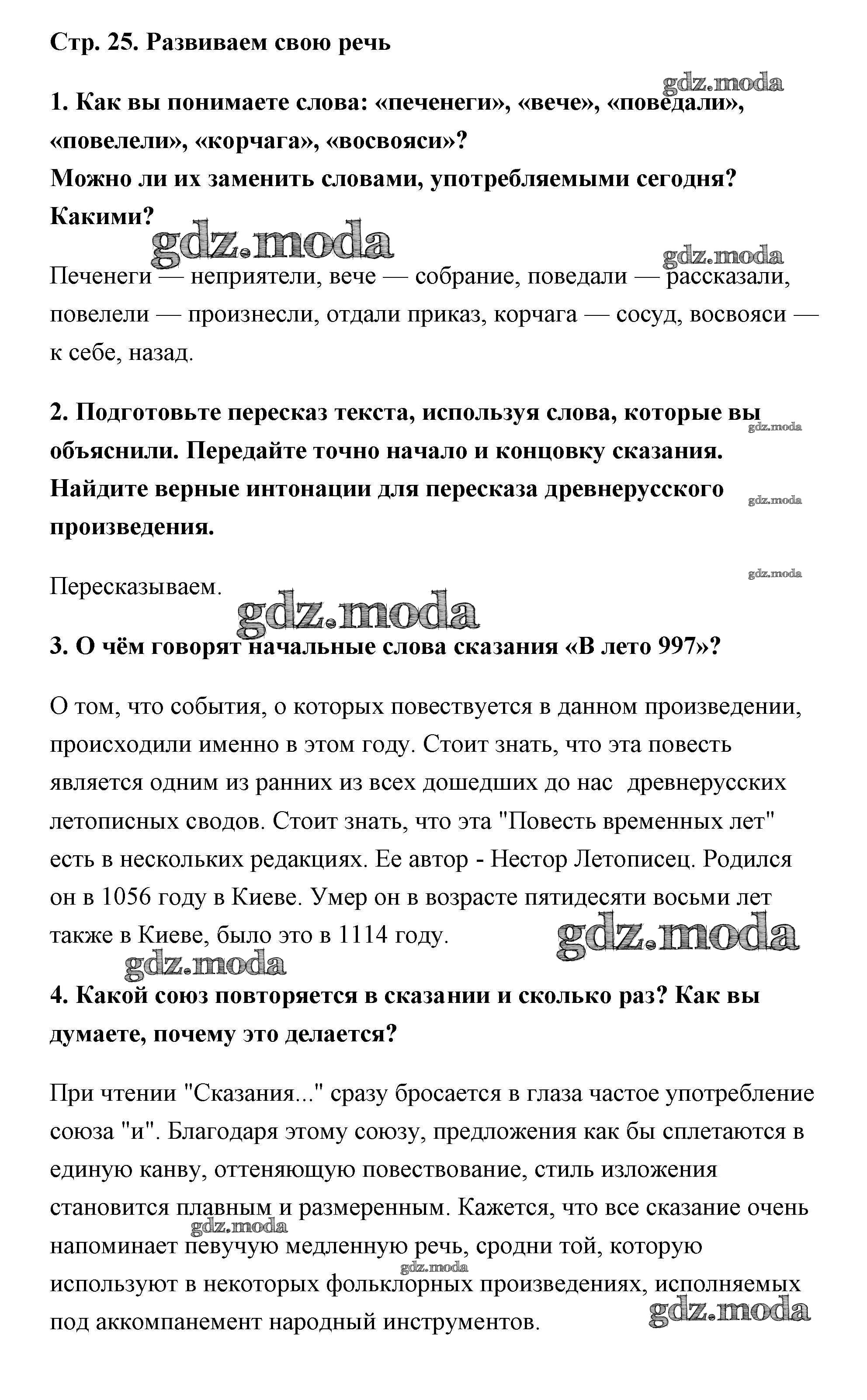 ГДЗ решение к заданию № страница 25 Литература 6 класс Коровина Просвещение 2016 Часть 1 ФГОС бесплатно на гдз.мода!