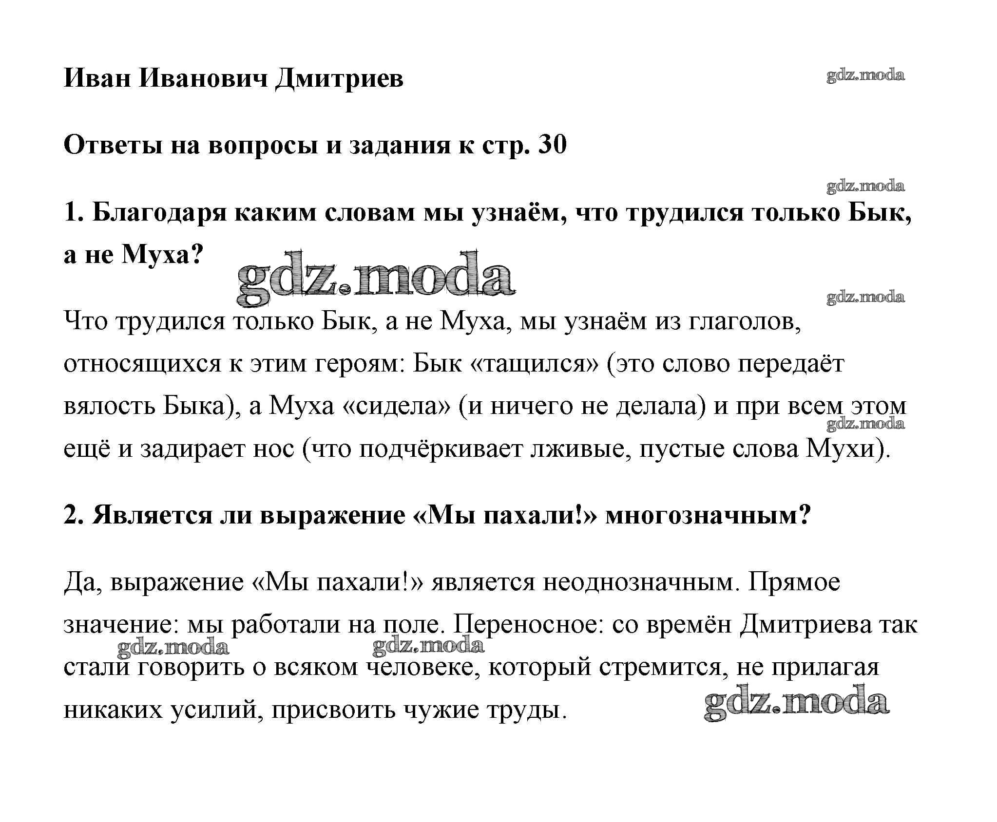 ОТВЕТ на задание № страница 30 Учебник по Литературе 6 класс Полухина