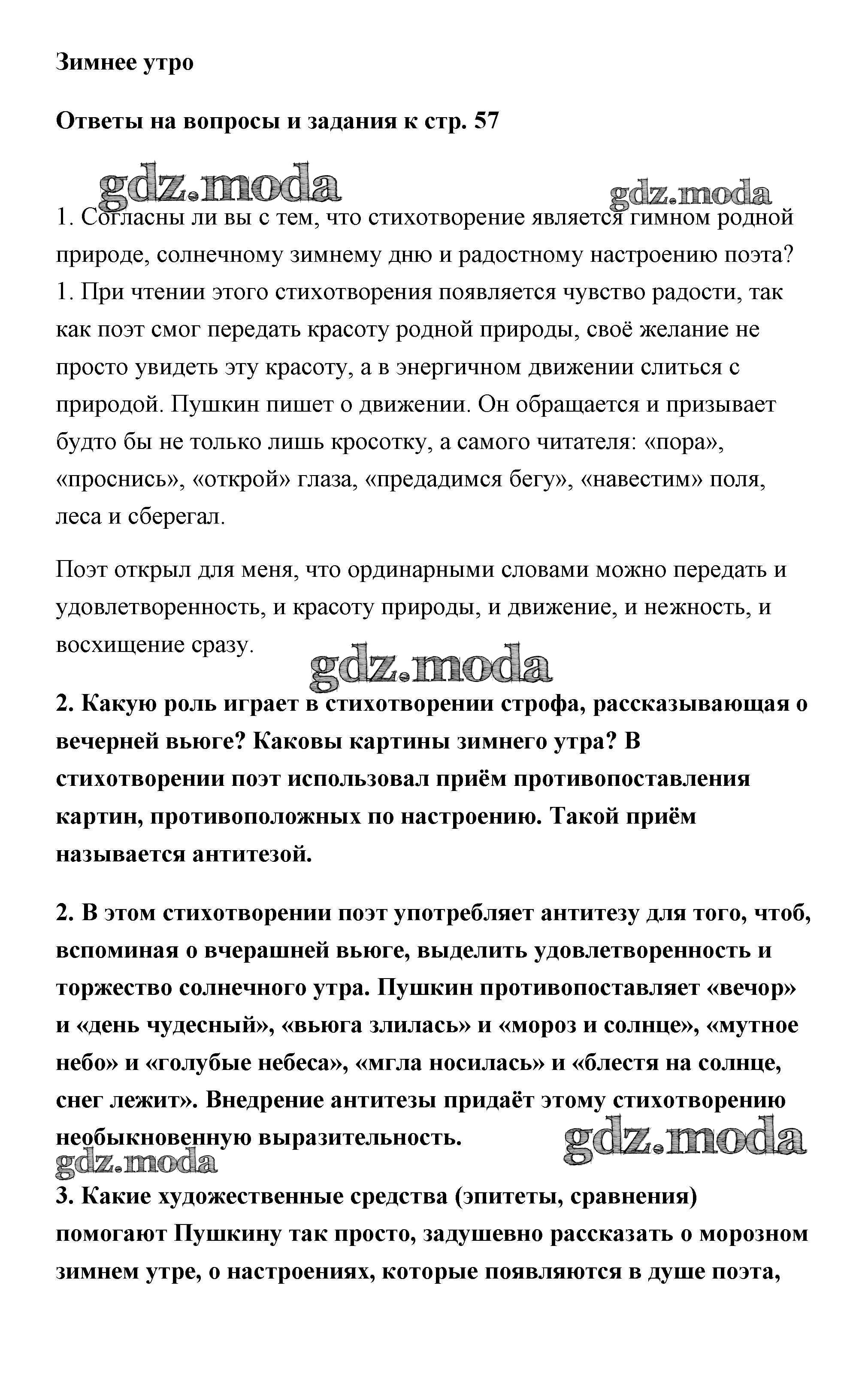 ГДЗ решение к заданию № страница 57 Литература 6 класс Коровина Просвещение 2016 Часть 1 ФГОС бесплатно на гдз.мода!