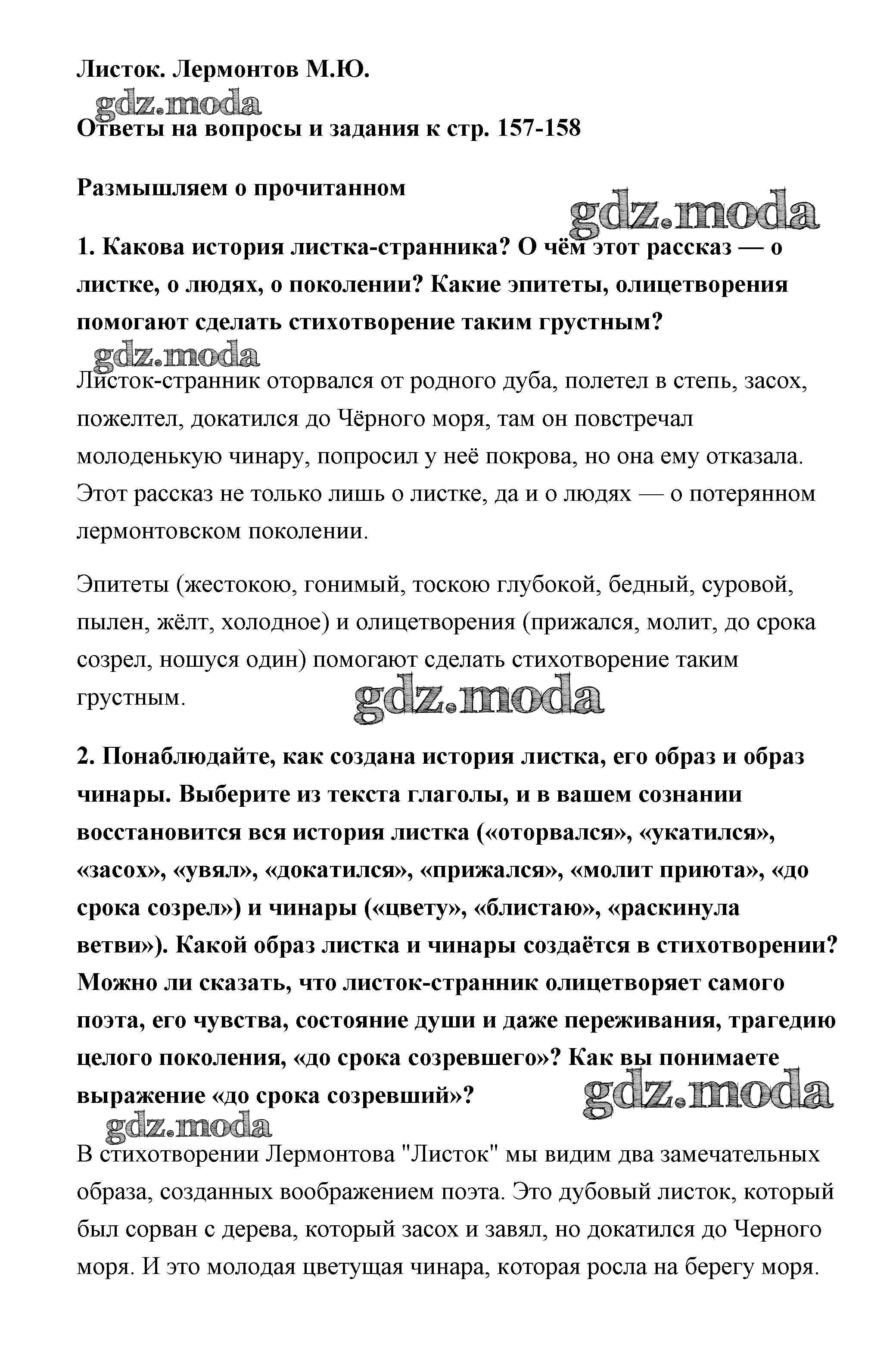 ГДЗ решение к заданию № страница 157 Литература 6 класс Коровина Просвещение 2016 Часть 1 ФГОС бесплатно на гдз.мода!