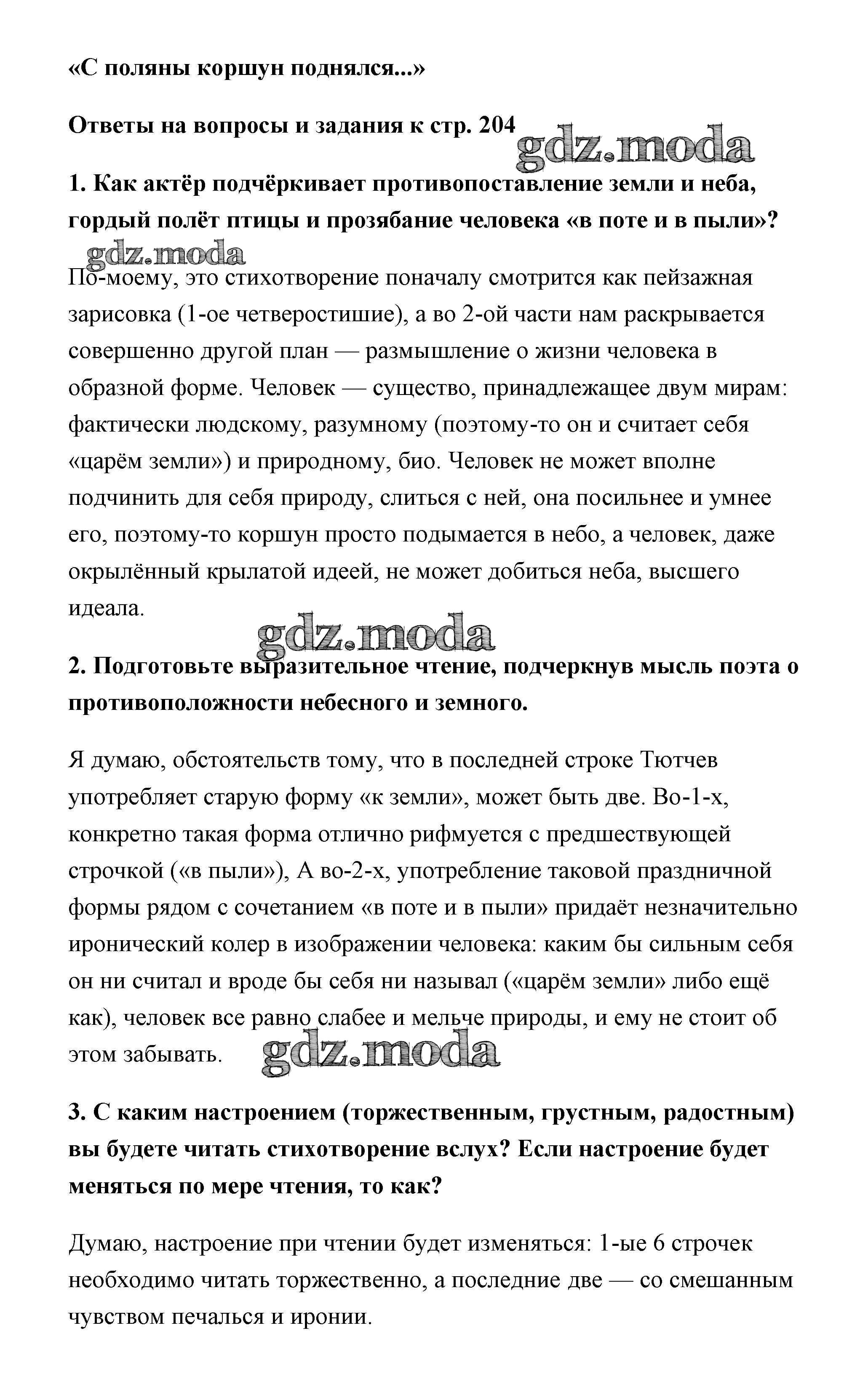 ГДЗ решение к заданию № страница 204 Литература 6 класс Коровина Просвещение 2016 Часть 1 ФГОС бесплатно на гдз.мода!