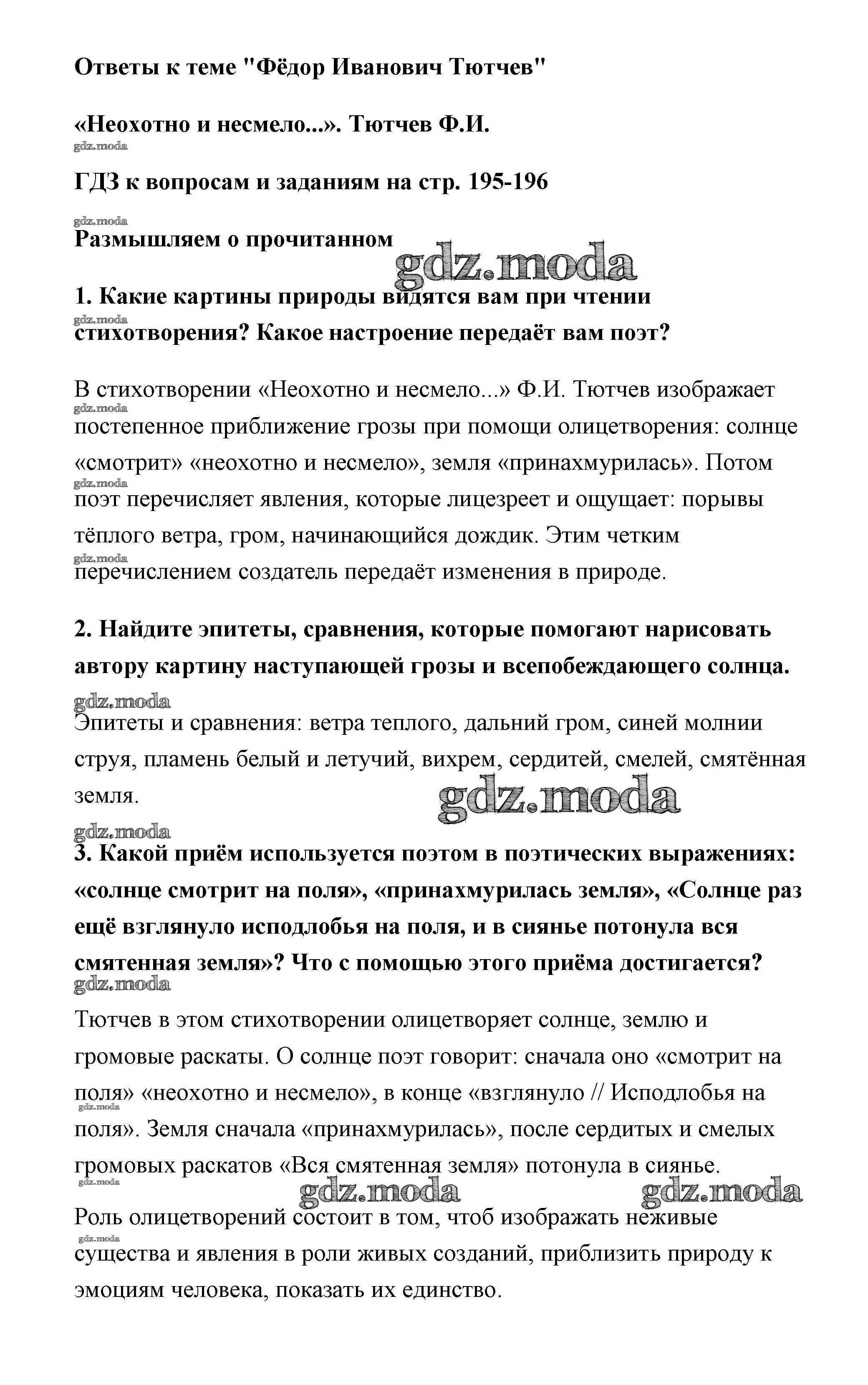 ОТВЕТ на задание № страница 195-196 Учебник по Литературе 6 класс Полухина