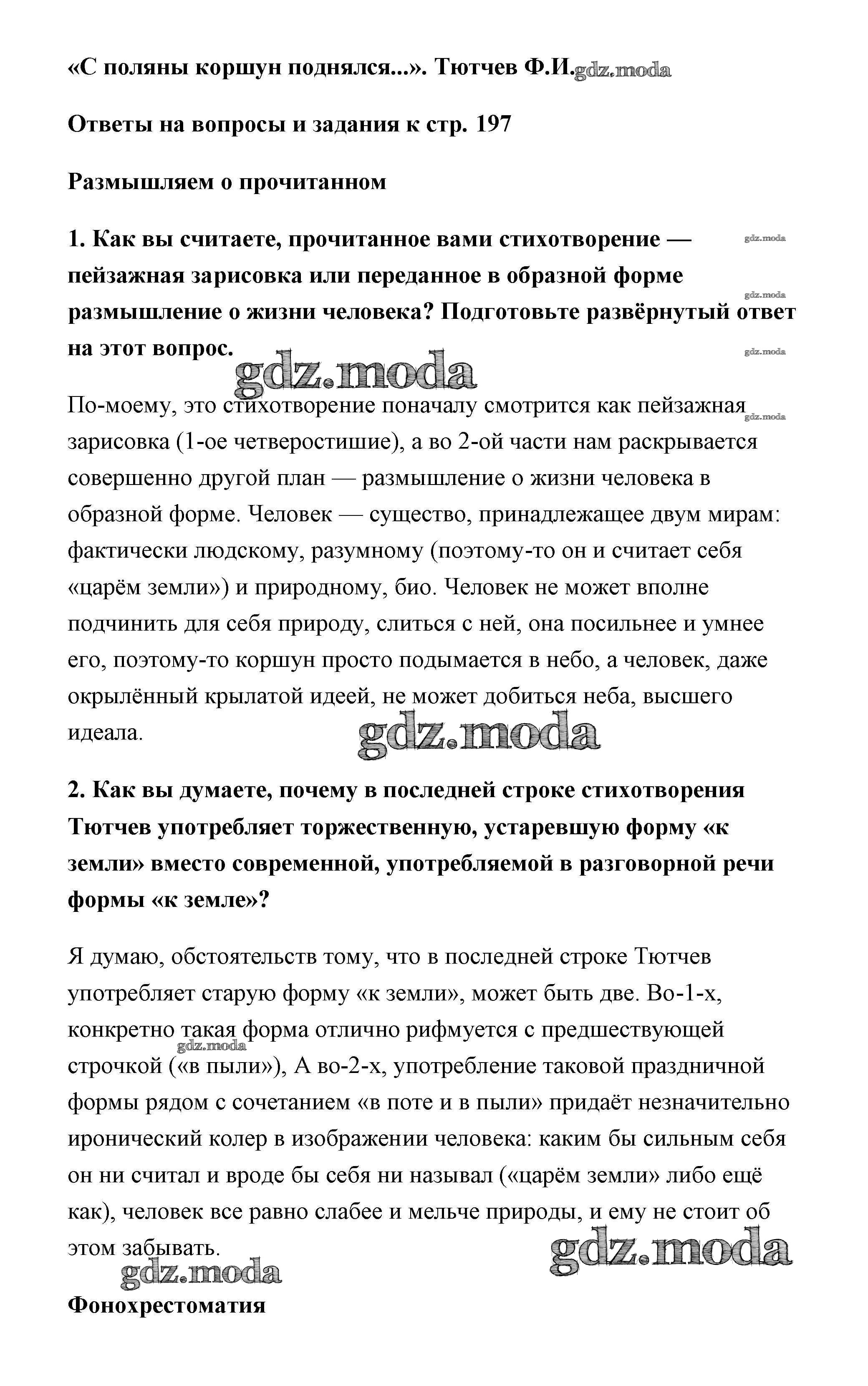 ГДЗ решение к заданию № страница 197 Литература 6 класс Коровина Просвещение 2016 Часть 1 ФГОС бесплатно на гдз.мода!