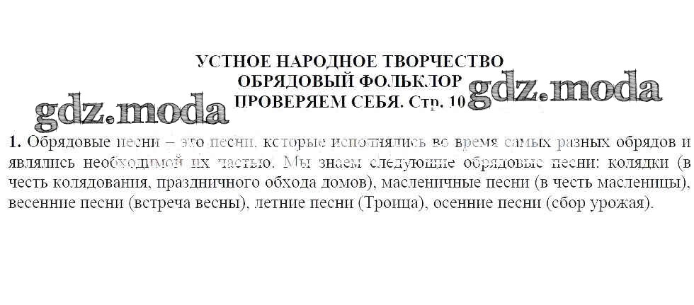 ГДЗ решение к заданию № 10 Литература 6 класс Полухина Просвещение 2016 ФГОС бесплатно на гдз.мода!