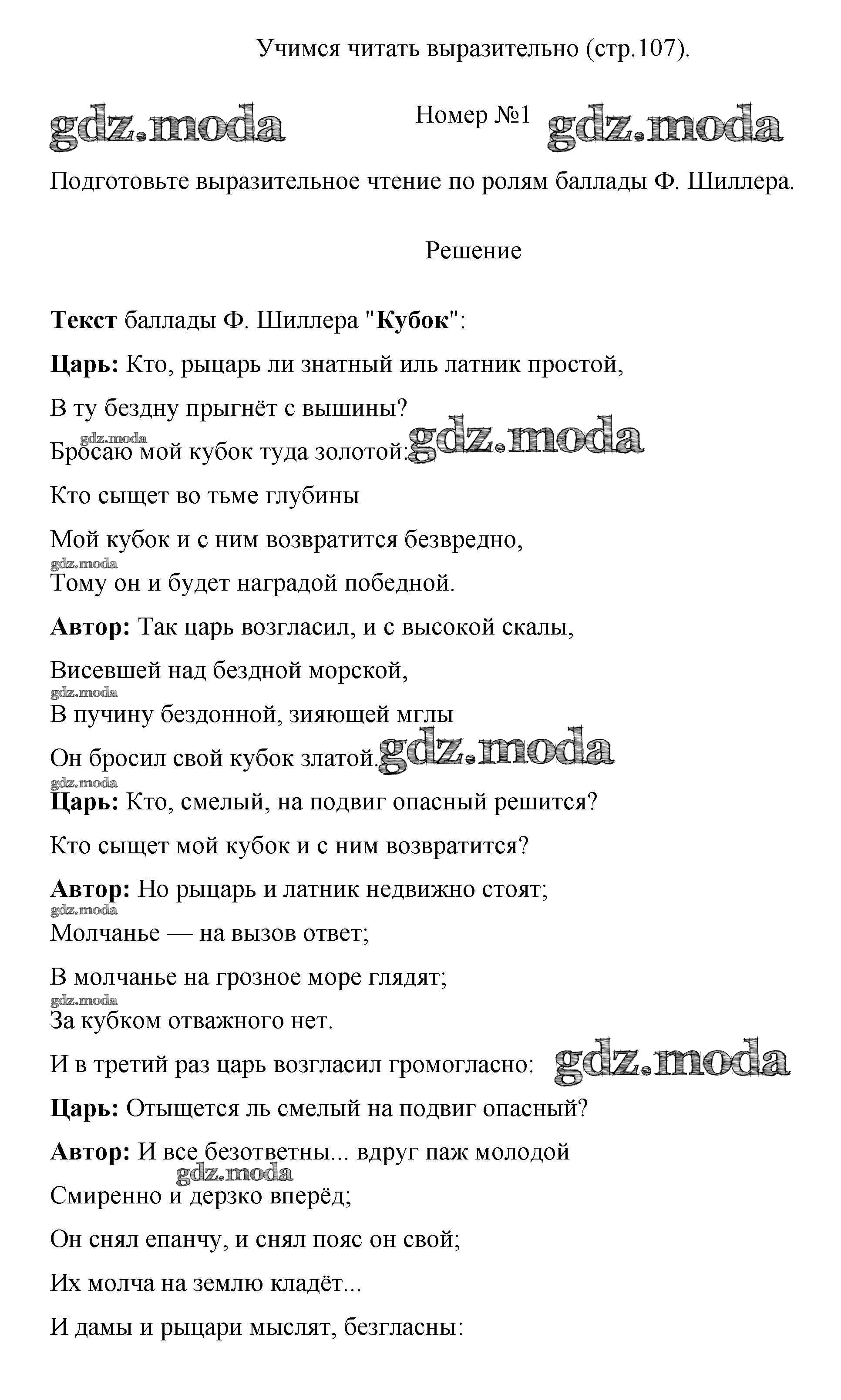 ГДЗ решение к заданию № 107 Литература 6 класс Полухина Просвещение 2016 ФГОС бесплатно на гдз.мода!