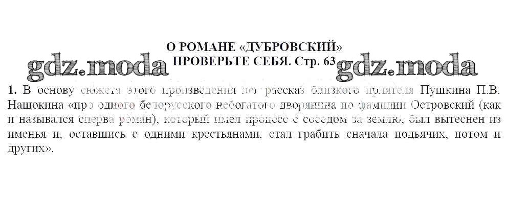 ГДЗ решение к заданию № 63 Литература 6 класс Полухина Просвещение 2016 ФГОС бесплатно на гдз.мода!