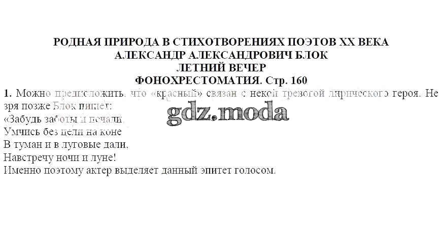 ГДЗ решение к заданию № 160 Литература 6 класс Полухина Просвещение 2016 ФГОС бесплатно на гдз.мода!