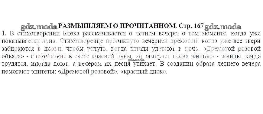 ГДЗ решение к заданию № 167 Литература 6 класс Полухина Просвещение 2016 ФГОС бесплатно на гдз.мода!