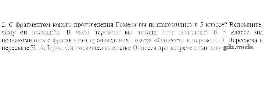 ОТВЕТ на задание № 2 Учебник по Литературе 6 класс Меркин Инновационная школа
