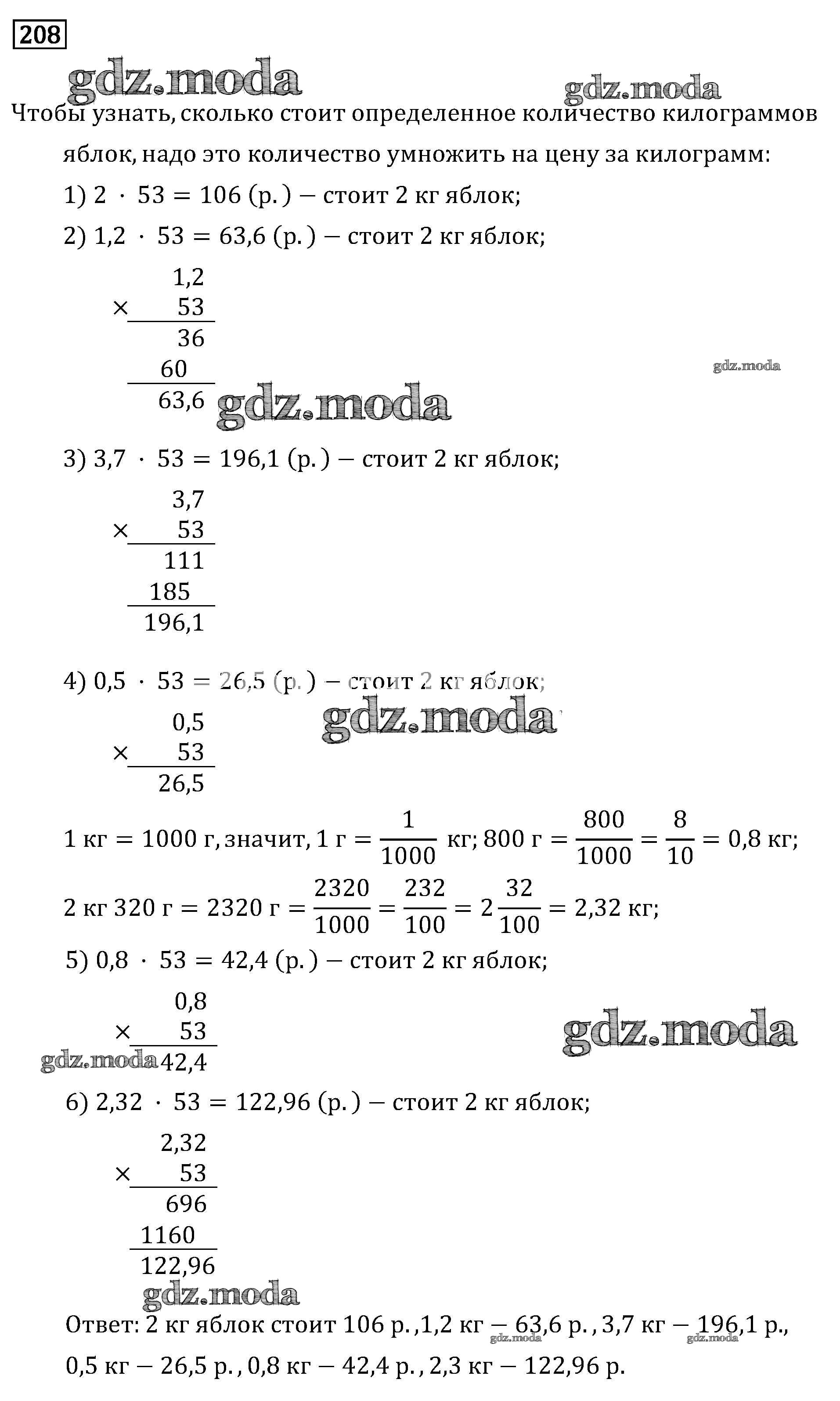 ГДЗ решение к заданию № 208 Математика 6 класс Бунимович Кузнецова Просвещение 2019 ФГОС бесплатно на гдз.мода!