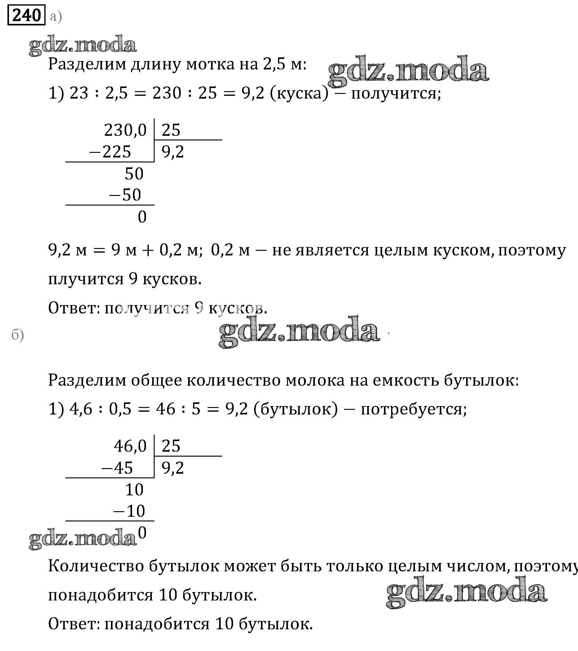 ГДЗ решение к заданию № 240 Математика 6 класс Бунимович Кузнецова Просвещение 2019 ФГОС бесплатно на гдз.мода!