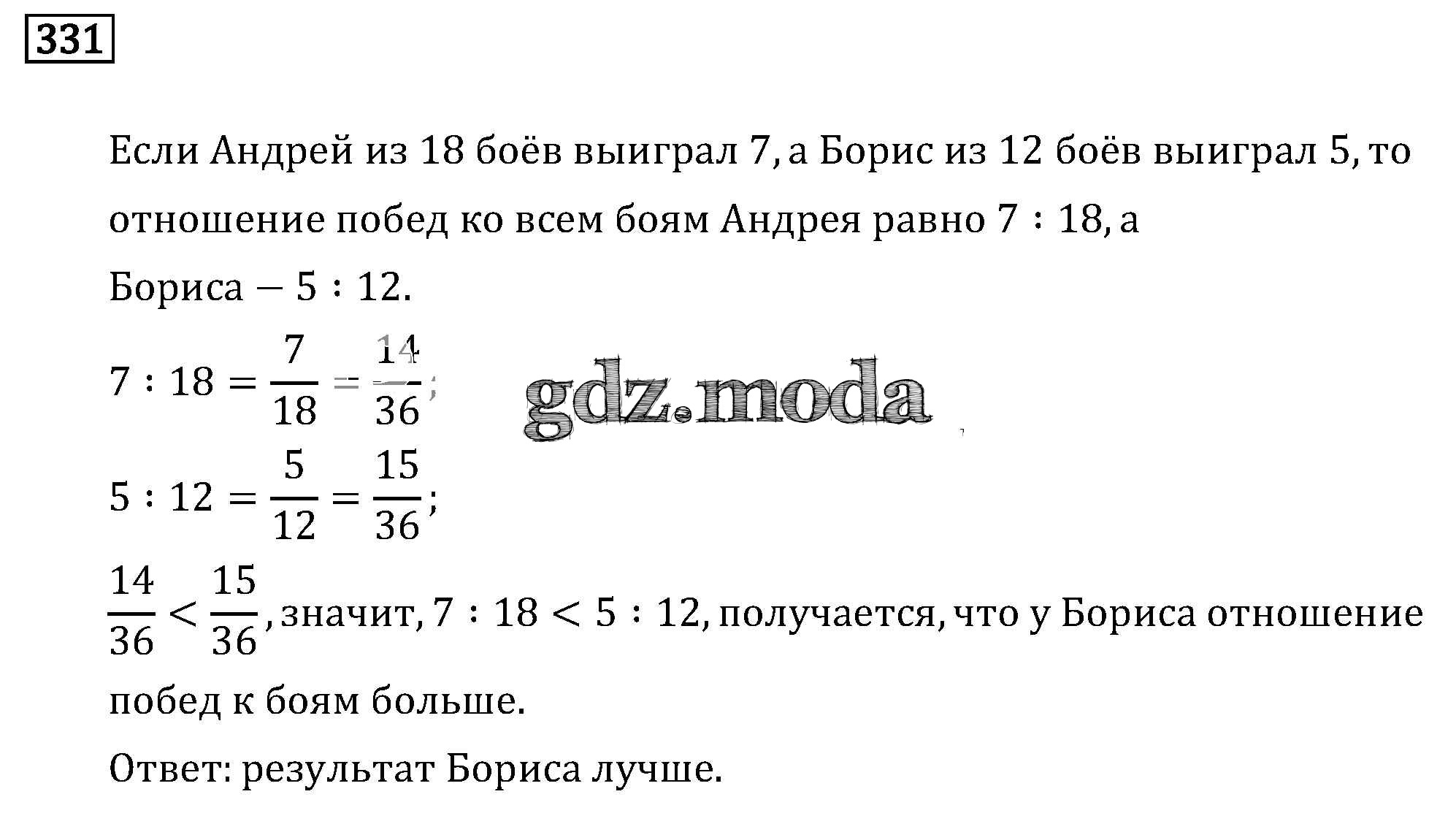 ГДЗ решение к заданию № 331 Математика 6 класс Бунимович Кузнецова Просвещение 2019 ФГОС бесплатно на гдз.мода!