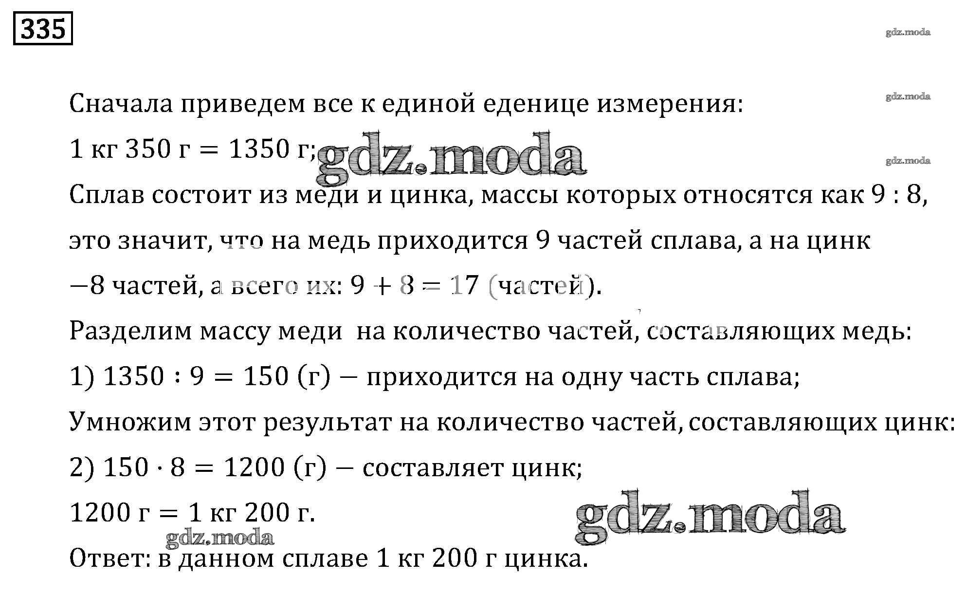 ГДЗ решение к заданию № 335 Математика 6 класс Бунимович Кузнецова Просвещение 2019 ФГОС бесплатно на гдз.мода!
