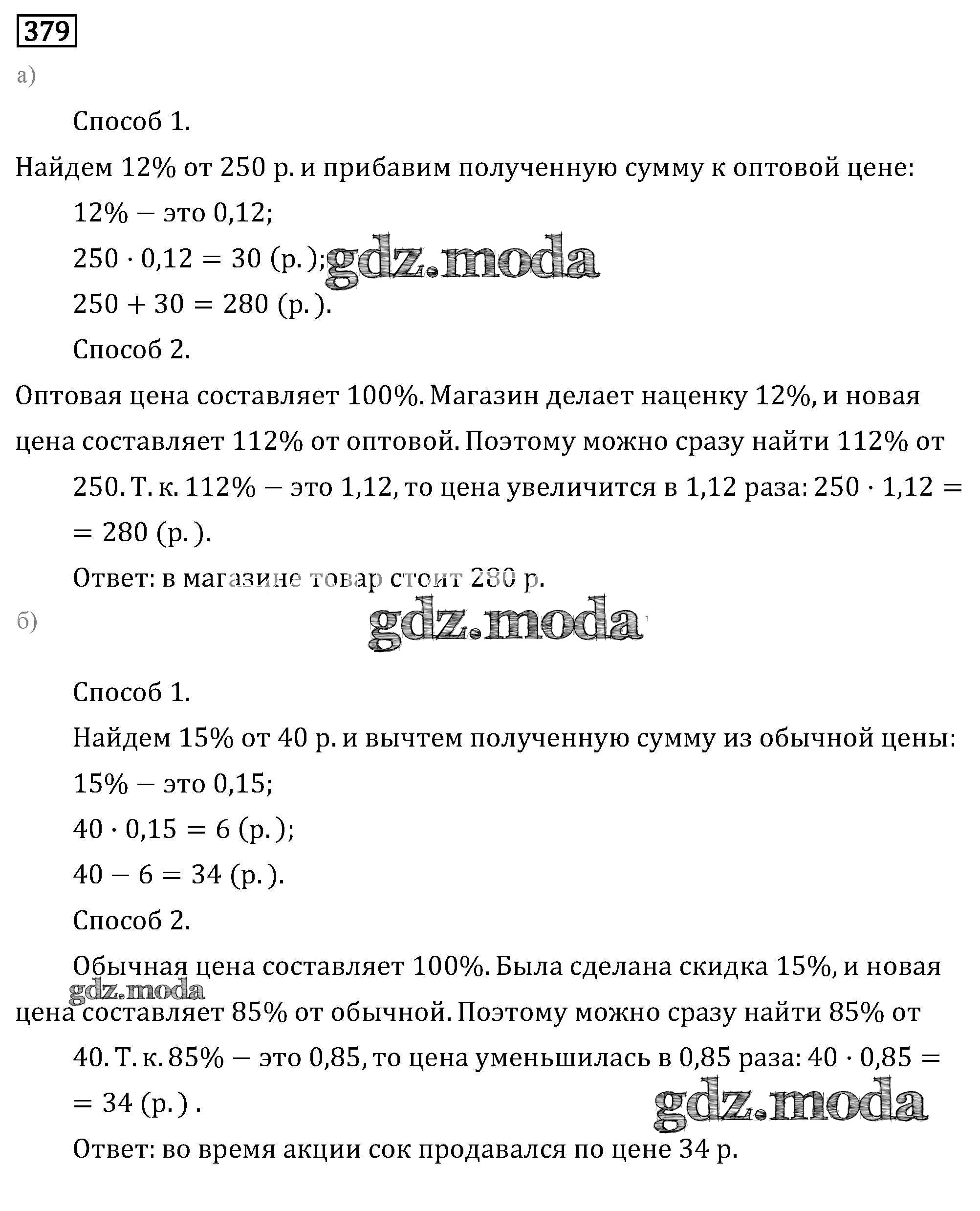 ГДЗ решение к заданию № 379 Математика 6 класс Бунимович Кузнецова Просвещение 2019 ФГОС бесплатно на гдз.мода!