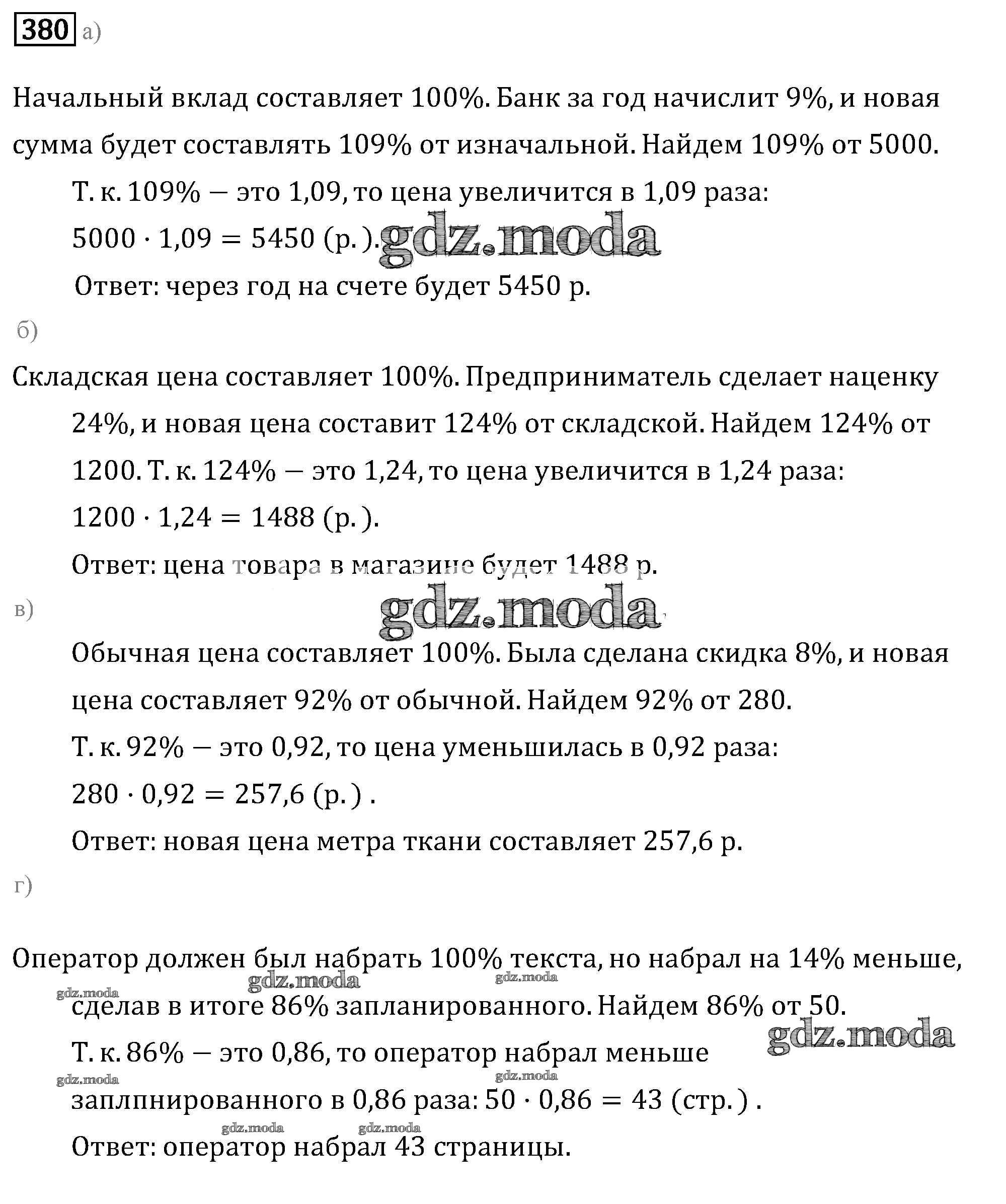 ГДЗ решение к заданию № 380 Математика 6 класс Бунимович Кузнецова Просвещение 2019 ФГОС бесплатно на гдз.мода!