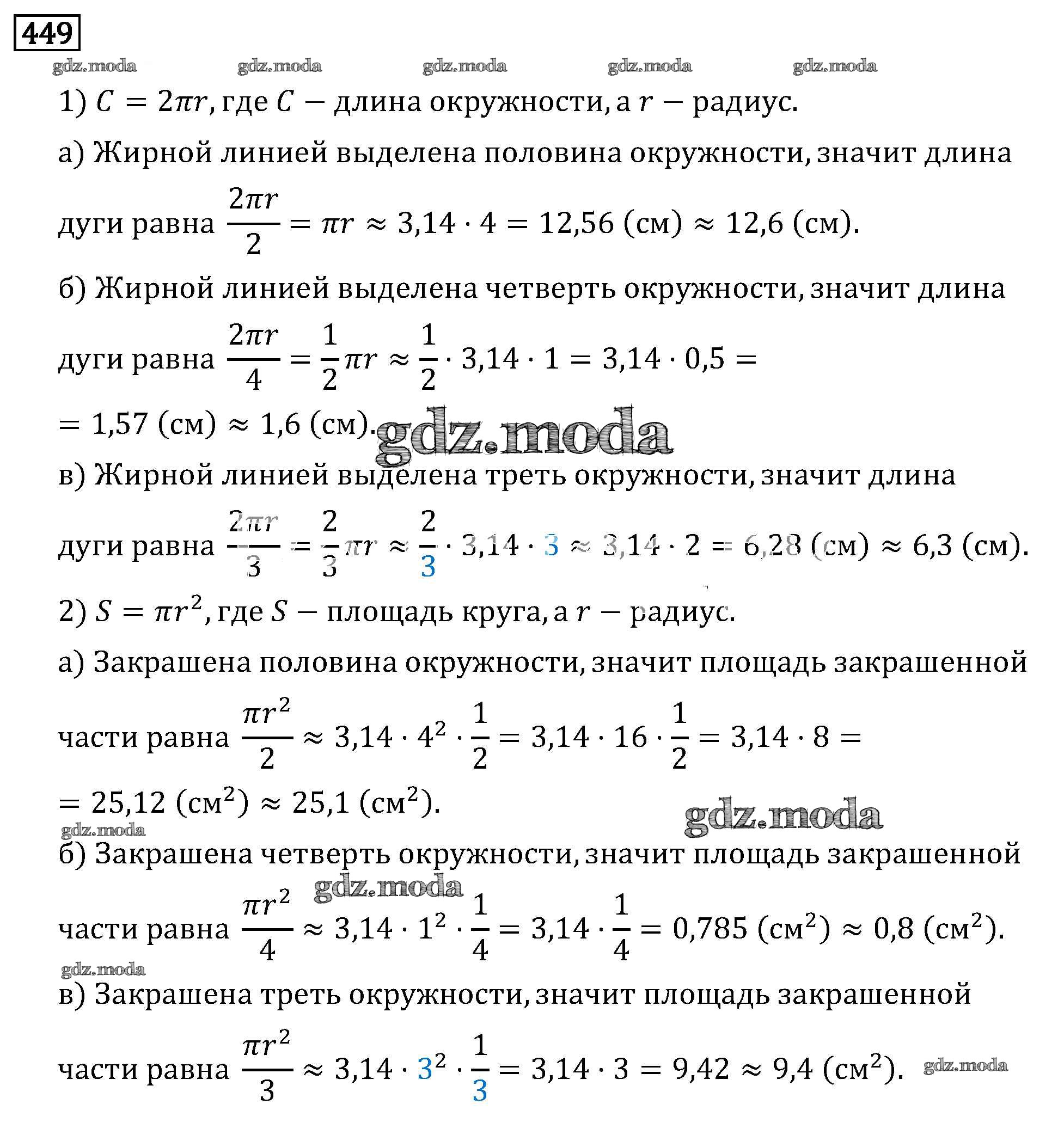 ОТВЕТ на задание № 449 Учебник по Математике 6 класс Бунимович Сферы