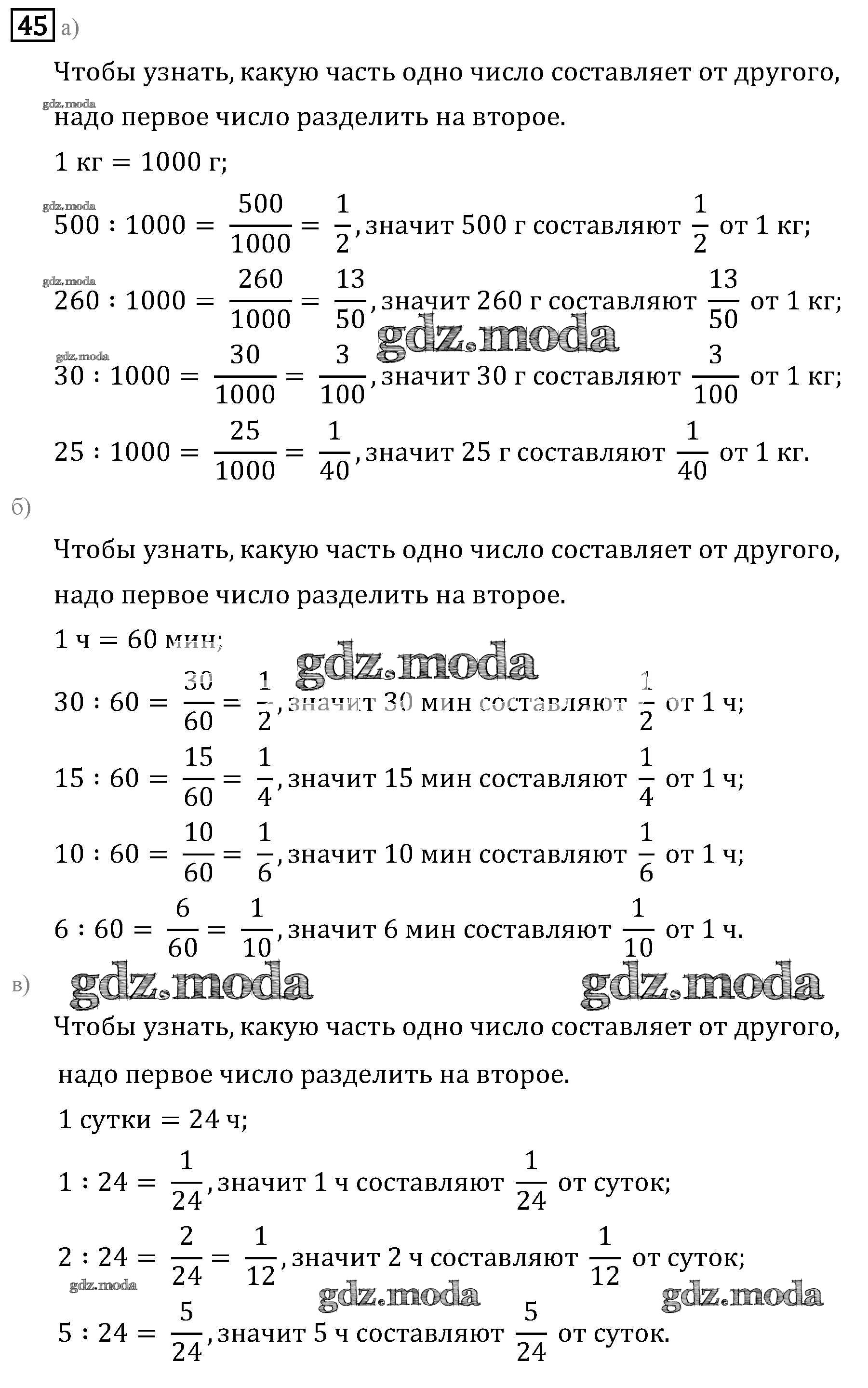 ГДЗ решение к заданию № 45 Математика 6 класс Бунимович Кузнецова Просвещение 2019 ФГОС бесплатно на гдз.мода!