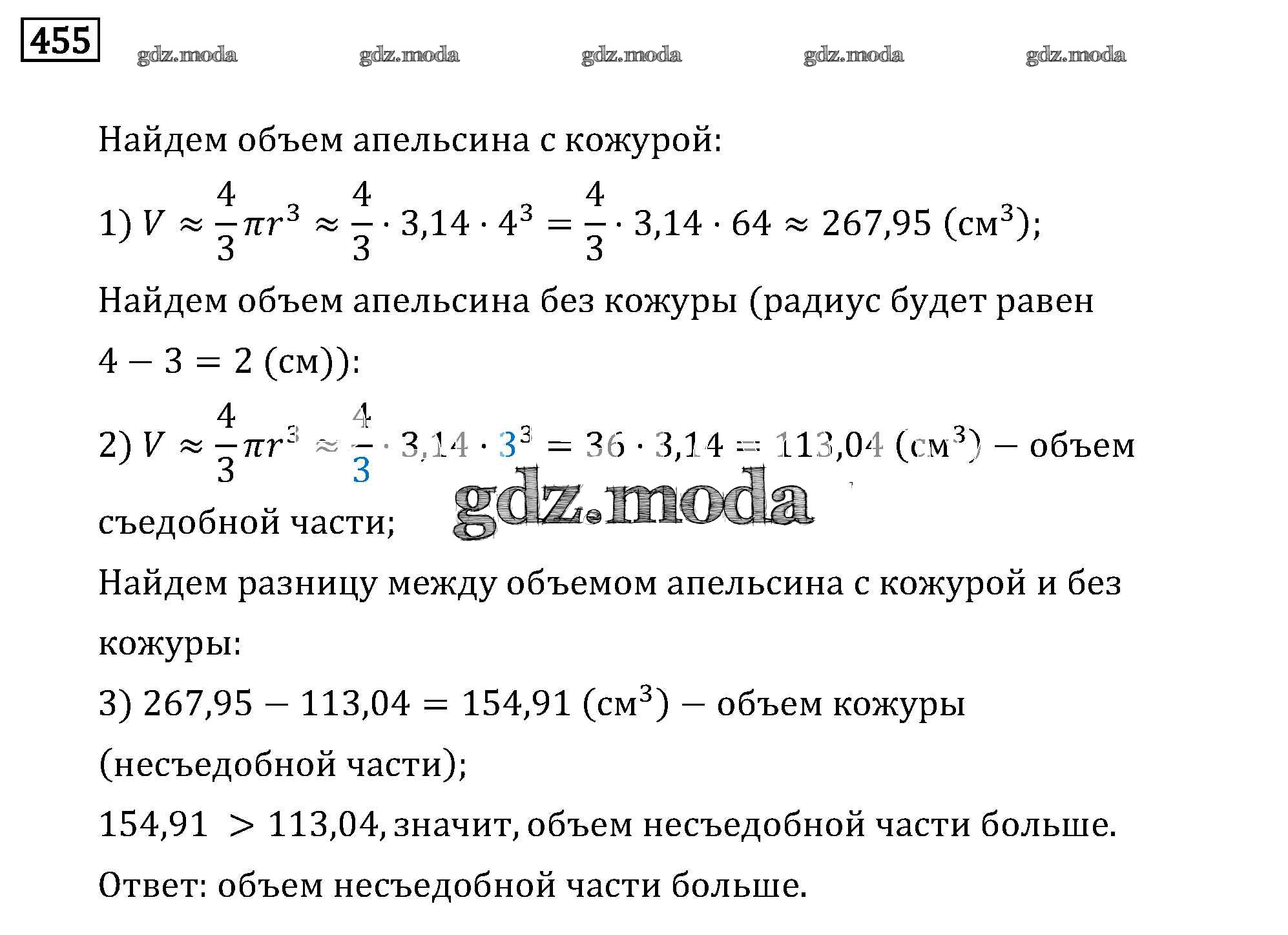ОТВЕТ на задание № 455 Учебник по Математике 6 класс Бунимович Сферы