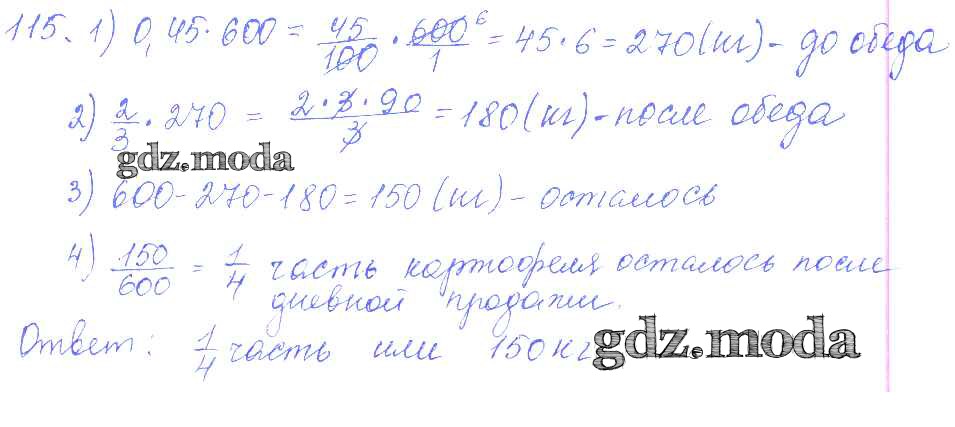 ГДЗ решение к заданию № 115 Математика 6 класс дидактические материалы Чесноков А.С. Академкнига 2014 ФГОС бесплатно на гдз.мода!