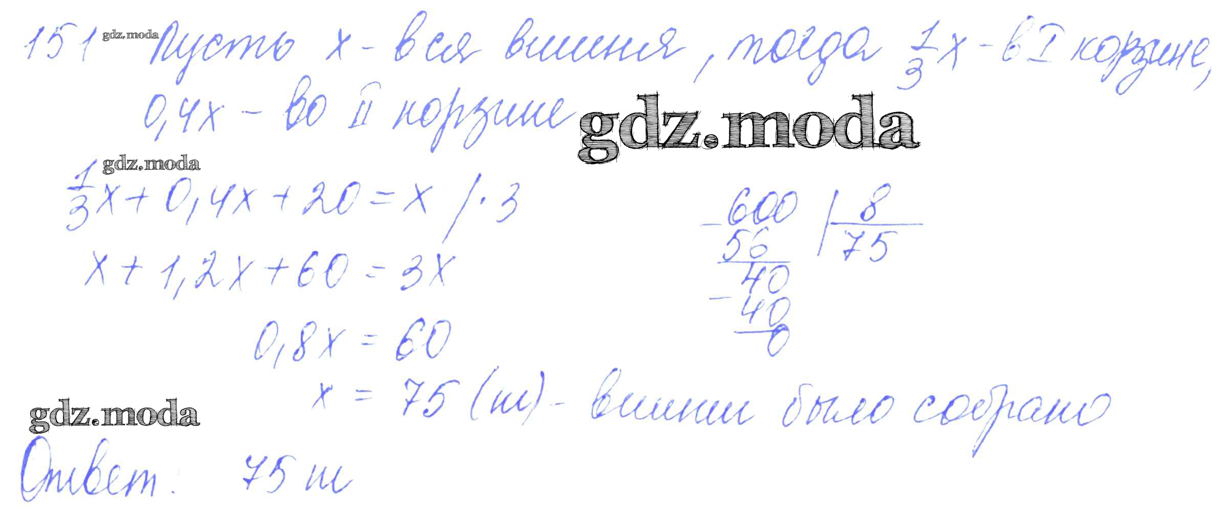 ГДЗ решение к заданию № 151 Математика 6 класс дидактические материалы Чесноков А.С. Академкнига 2014 ФГОС бесплатно на гдз.мода!