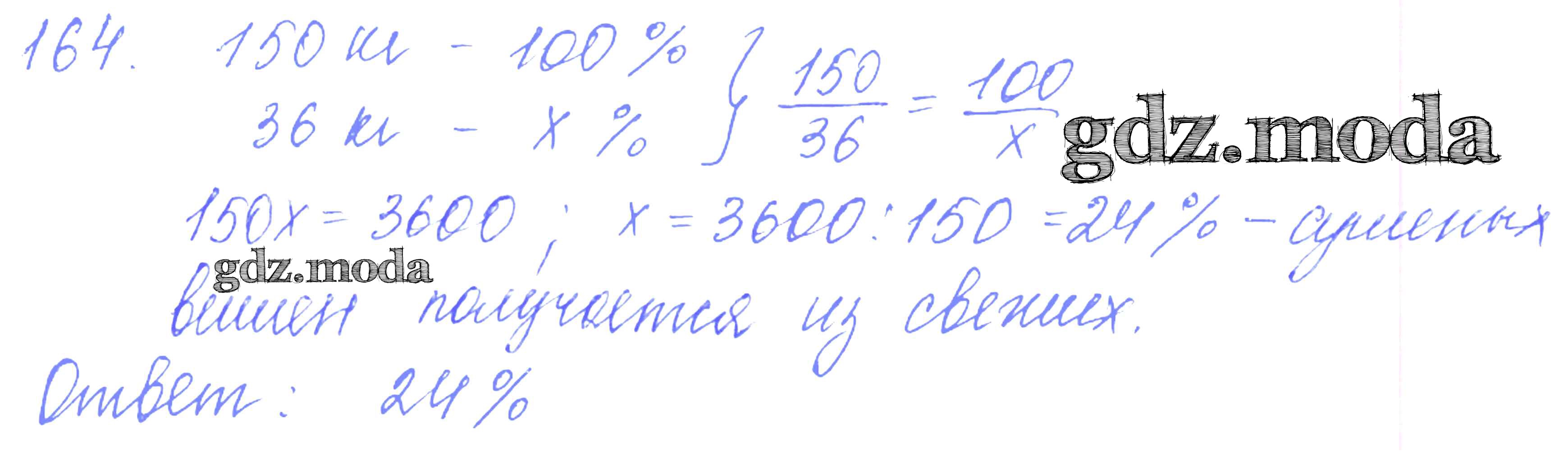 ГДЗ решение к заданию № 164 Математика 6 класс дидактические материалы Чесноков А.С. Академкнига 2014 ФГОС бесплатно на гдз.мода!
