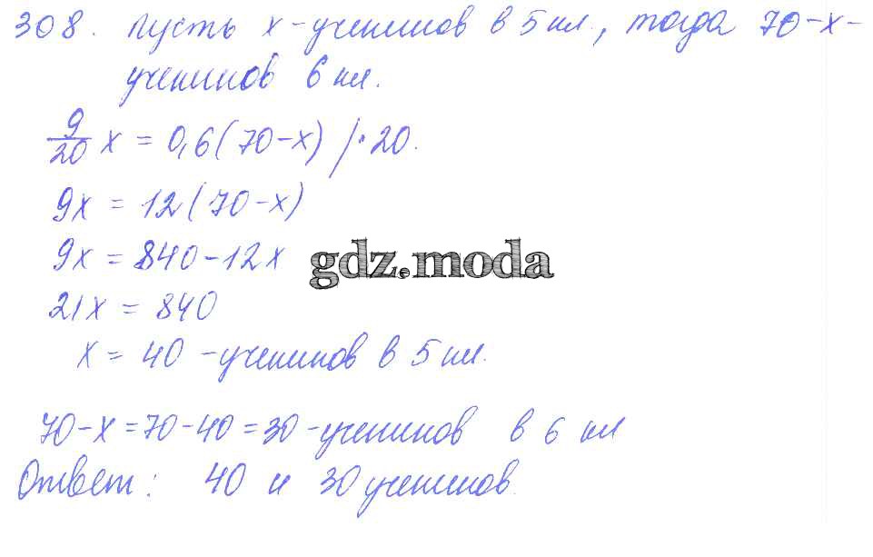 ГДЗ решение к заданию № 308 Математика 6 класс дидактические материалы Чесноков А.С. Академкнига 2014 ФГОС бесплатно на гдз.мода!