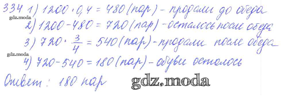 ГДЗ решение к заданию № 334 Математика 6 класс дидактические материалы Чесноков А.С. Академкнига 2014 ФГОС бесплатно на гдз.мода!
