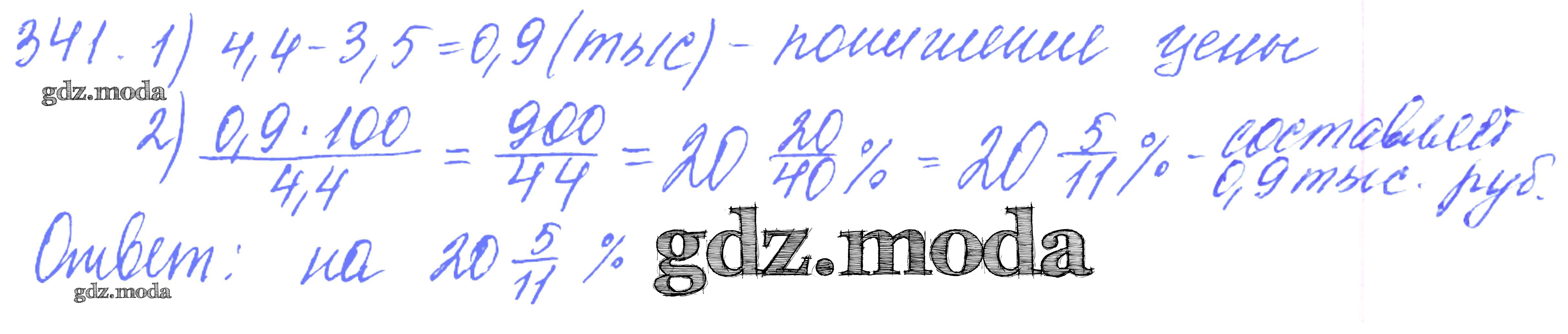 ГДЗ решение к заданию № 341 Математика 6 класс дидактические материалы Чесноков А.С. Академкнига 2014 ФГОС бесплатно на гдз.мода!
