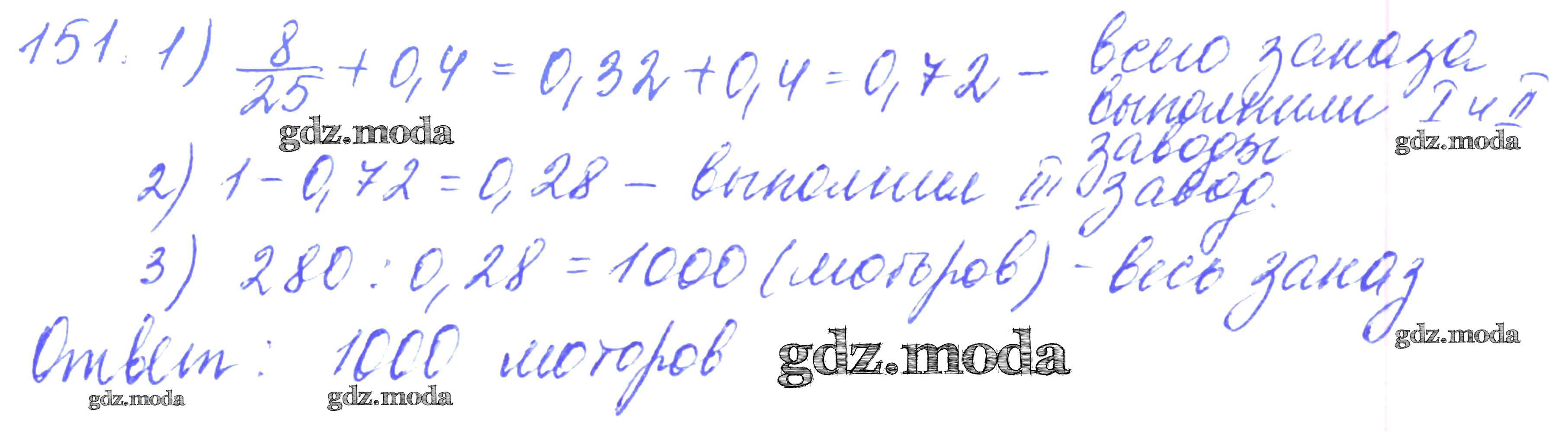 ГДЗ решение к заданию № 151 Математика 6 класс дидактические материалы Чесноков А.С. Академкнига 2014 ФГОС бесплатно на гдз.мода!