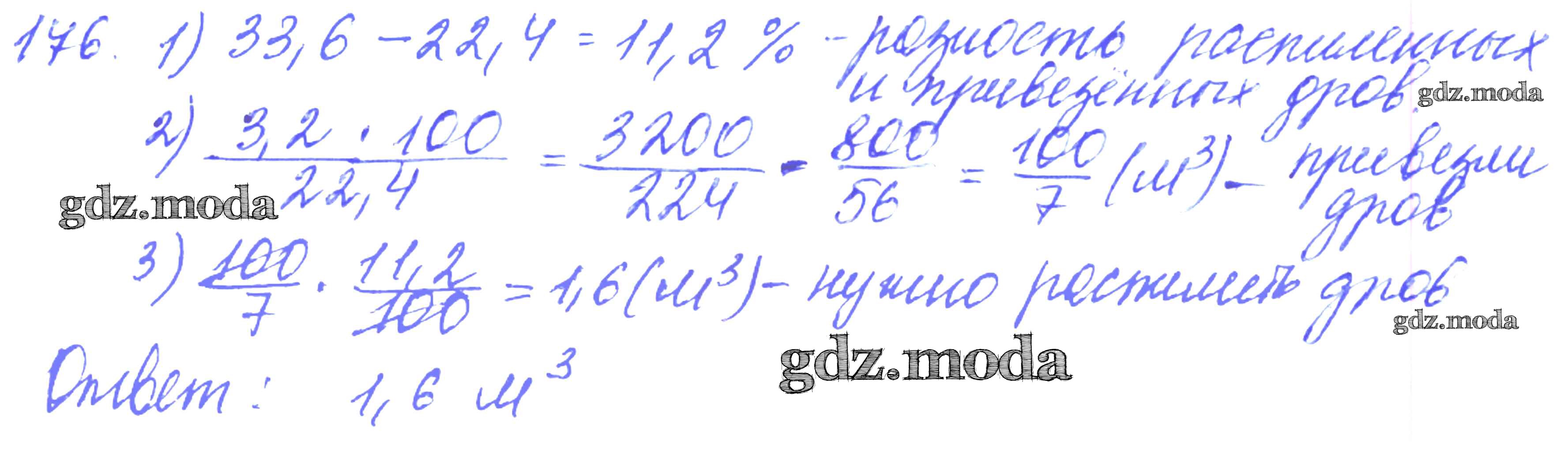 ГДЗ решение к заданию № 176 Математика 6 класс дидактические материалы Чесноков А.С. Академкнига 2014 ФГОС бесплатно на гдз.мода!