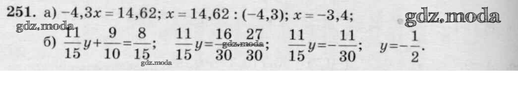 ОТВЕТ на задание № 251 Дидактические материалы по Математике 6 класс Чесноков