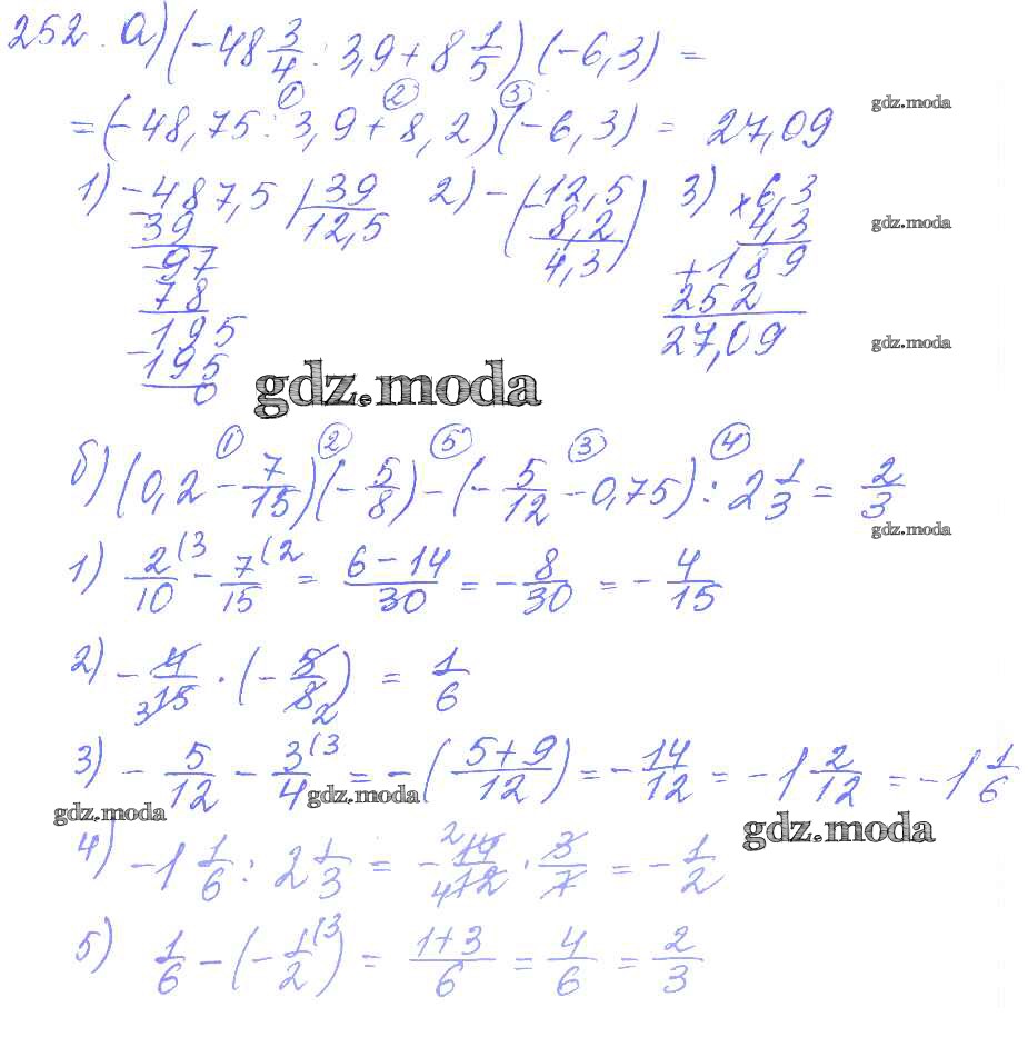ОТВЕТ на задание № 252 Дидактические материалы по Математике 6 класс Чесноков
