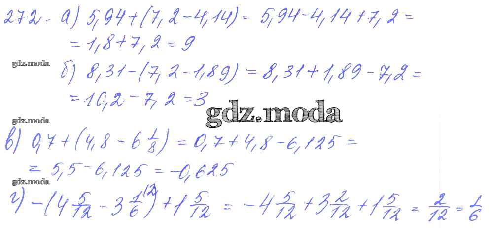 ОТВЕТ на задание № 272 Дидактические материалы по Математике 6 класс Чесноков
