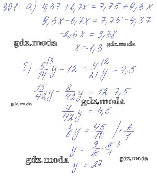 ГДЗ решение к заданию № 301 Математика 6 класс дидактические материалы Чесноков А.С. Академкнига 2014 ФГОС бесплатно на гдз.мода!