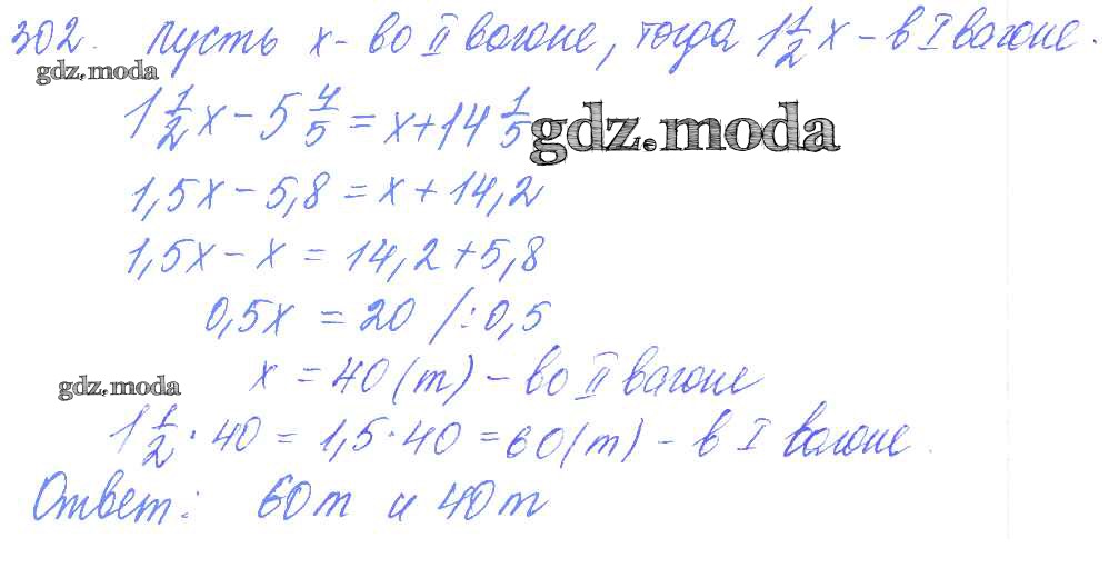 ГДЗ решение к заданию № 302 Математика 6 класс дидактические материалы Чесноков А.С. Академкнига 2014 ФГОС бесплатно на гдз.мода!